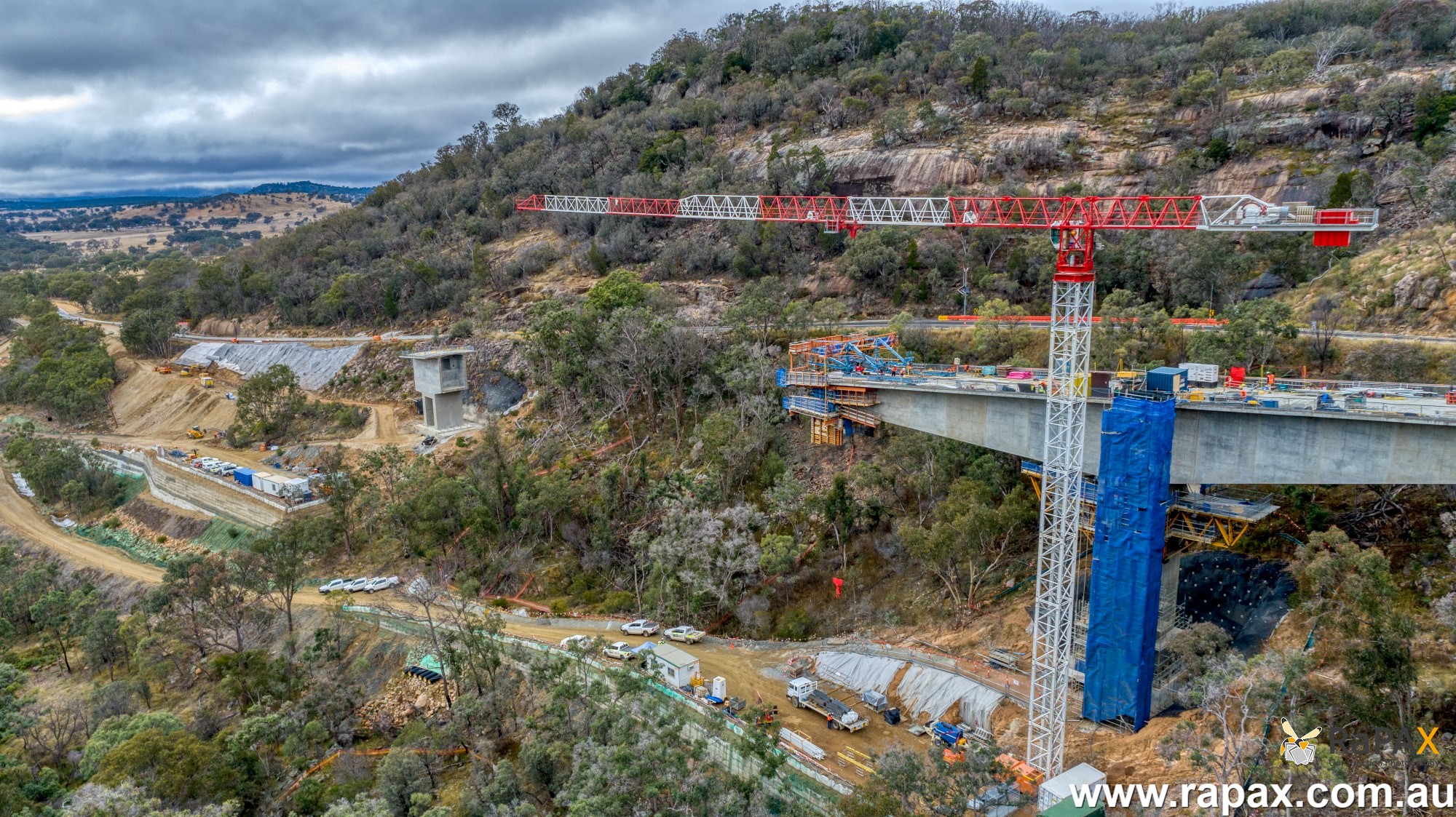 The $40 million Bolivia Hill Upgrade on the New England Highway involved constructing a 320-metre, 150-metre centre span, concrete balanced cantilever bridge utilising post-tensioned balanced cantilever technology and cast-in-situ concrete construction methods. The bridge improved road safety and enhanced road transport productivity, efficiency, and reliability of travel.